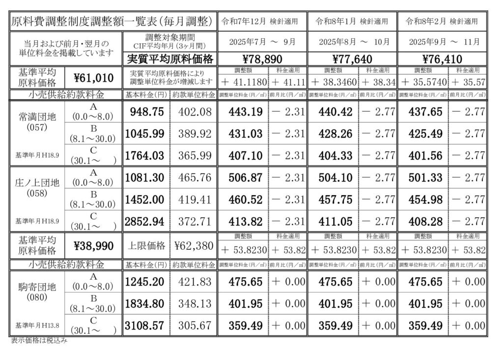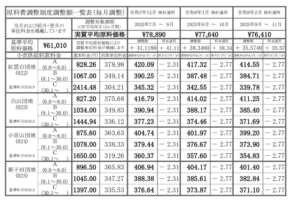 ガス小売供給約款に基づき、基本料金及び単位料金(基準単位料金又は調整単位料金)をお知らせいたします。