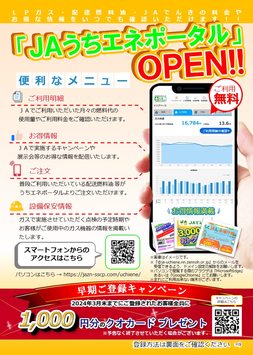 スマートフォンやパソコンで、LPガスやJAでんきの料金を確認できるサービスをはじめました。